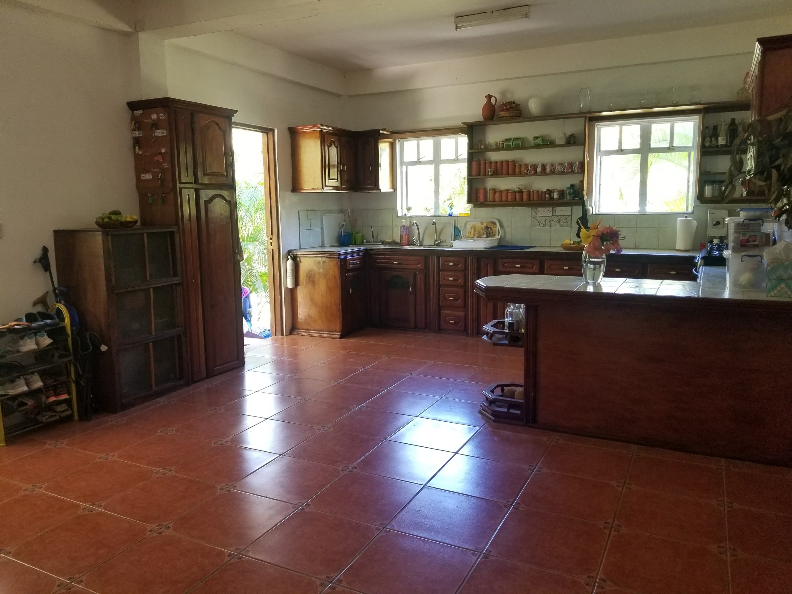 This two-story villa, set in an 1100 sq meter fenced plot (11840 square feet), boasts six bedrooms, two bathrooms, two showers, separate toilets, two fully equipped kitchens, three patios plus an independent apartment with a kitchenette. Equipped with solar panels, a water solar heater, and water tanks totalling 3000 gallons, Kaï Papaï is perfect for large families or those who love vast spaces. It is also a once-in-a-lifetime opportunity for those looking to invest in the hospitality industry.