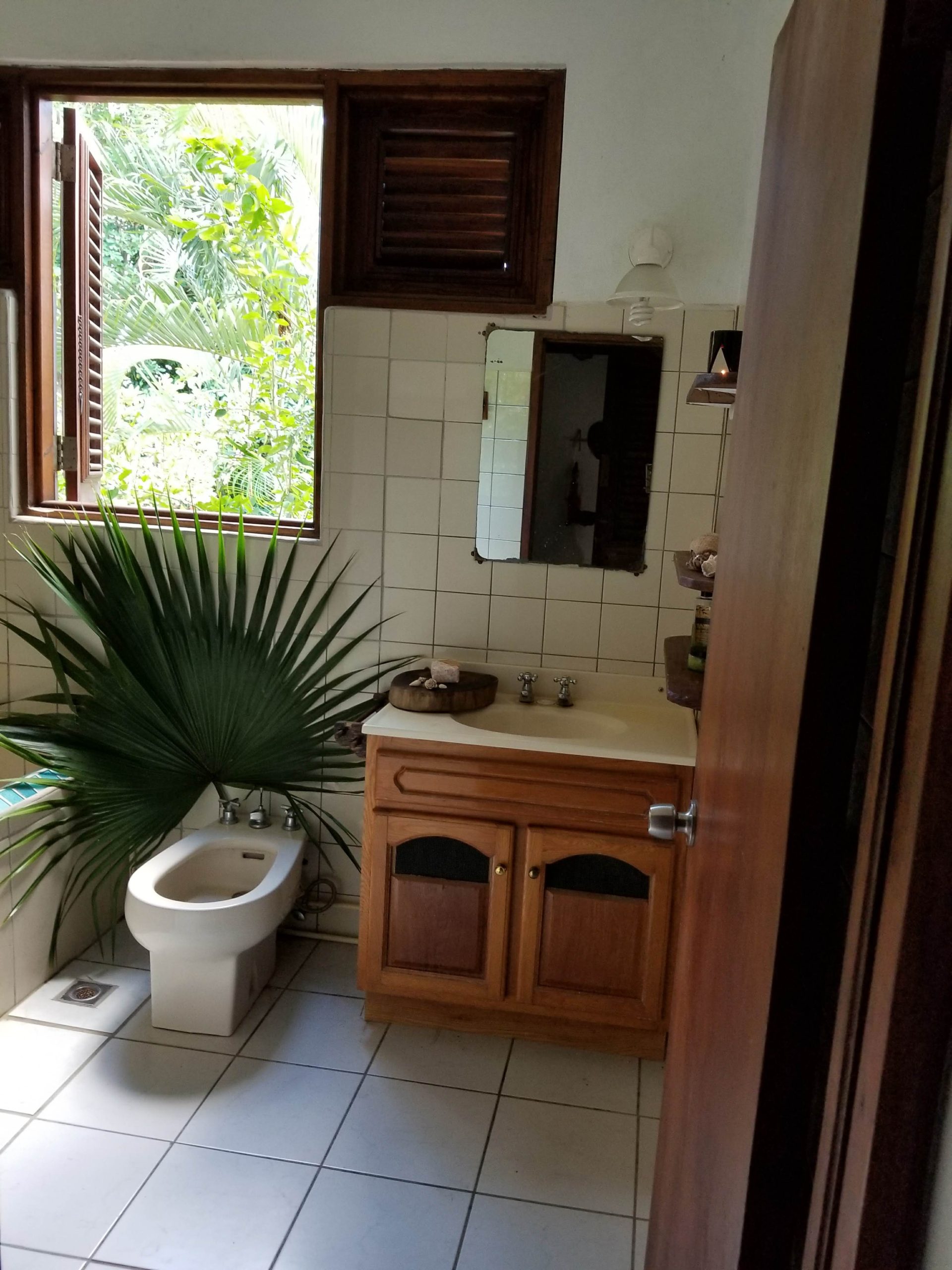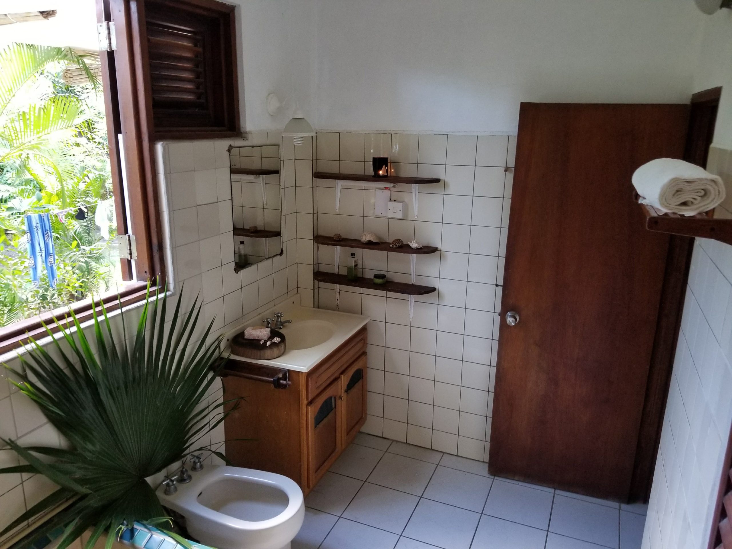 The Upper Villa, with its two large bedrooms, Les Dauphins and Les Tourtereaux, sleeps up to eight people. The occupants have access to a vast terrace, a large kitchen, a full bathroom complete with a bathtub, washing basin, bidet, toilet, washing machine, and storage space, as well as a half-bathroom and two outdoor showers. From the terrace, you can enjoy the majestic profile of Gros Piton and a distant view of Anse Touloulou’s secluded beach, where you can plunge into the Caribbean Sea.